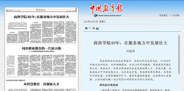 10月19日,《中國教育報(bào)》以《商洛學(xué)院40年:在服務(wù)地方中發(fā)展壯大》為題,刊發(fā)了校黨委書記、校長劉建林的署名文章。文章從“師范起步奠基礎(chǔ),特色辦學(xué)求發(fā)展,植根地方促轉(zhuǎn)型”三個方面,全面回顧了我校建校40年、升本10年來,堅(jiān)持扎根山區(qū)、服務(wù)地方,在服務(wù)地方中不斷發(fā)展壯大的特色發(fā)展之路。總結(jié)了我校凝練打造以秦嶺現(xiàn)代中藥資源和綠色食品開發(fā)利用,秦嶺礦產(chǎn)資源綜合開發(fā)利用,賈平凹研究、秦嶺畫派等地方文化傳承創(chuàng)新為代表的辦學(xué)特色,深入開展“根植地方行動計(jì)劃”的實(shí)踐和成果。