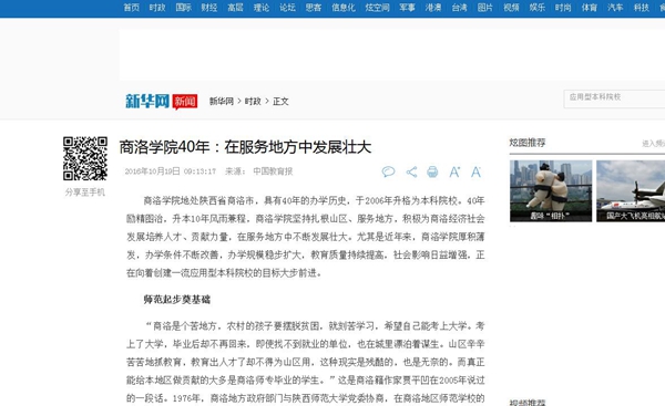 新華網(wǎng)——商洛學(xué)院40年:在服務(wù)地方中發(fā)展壯大