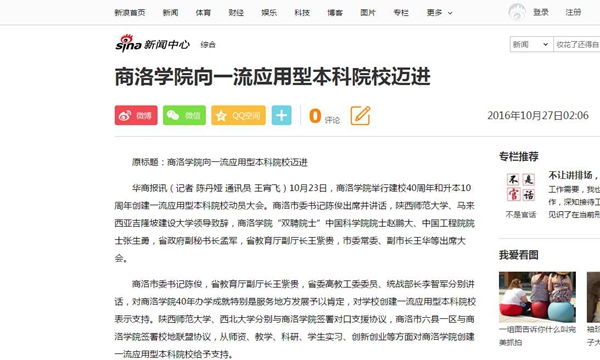 新浪網(wǎng)——商洛學(xué)院向一流應(yīng)用型本科院校邁進(jìn)