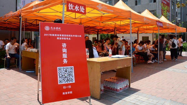 6月18日,是陜西省普通高校招生外語口語考試日。上午7:30開始,1541名考生陸續(xù)從商洛各地趕赴我校,在學(xué)生志愿者的引導(dǎo)下,有序排隊(duì)進(jìn)入考場參加考試,家長則在指定區(qū)域休息等候。