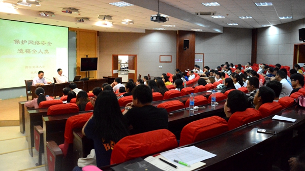 ——對全校范圍內(nèi)的網(wǎng)絡(luò)安全漏洞進(jìn)行大排查,并邀請西安交通大學(xué)博士生導(dǎo)師張德運(yùn)教授來校作了題為《保護(hù)網(wǎng)絡(luò)安全,造福全人類》的報告。
