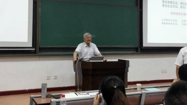 培訓(xùn)會上,首屆國家級教學(xué)名師、西安交通大學(xué)教師教學(xué)發(fā)展中心主任馬知恩教授做了《怎樣上好一堂課》的精彩演講。馬知恩教授從習(xí)近平總書記對高校教師提出的“四有”要求出發(fā),從五個方面分享了自己從教50多年的寶貴經(jīng)驗和心得體會:一、高度的敬業(yè)精神;二、認(rèn)真?zhèn)湔n,精心進(jìn)行教學(xué)設(shè)計;三、要有激情,對學(xué)生有吸引力和感染力;四、練好基本功,養(yǎng)成良好的習(xí)慣;五、更新教育理念,培養(yǎng)創(chuàng)新型人才。他認(rèn)為,上好一堂課有兩個大前提:一是對教學(xué)要有高度的敬業(yè)精神,要把教學(xué)作為自己的事業(yè)去追求;把教學(xué)當(dāng)作一門藝術(shù),不斷探索,追求完美;把每一次講課看成是一場演出,高標(biāo)準(zhǔn)要求自己,精益求精。二是要有堅實的業(yè)務(wù)基礎(chǔ)和一定的科研能力。上好一節(jié)課對教師意味著要認(rèn)真?zhèn)湔n,精心設(shè)計;意味著要有激情,對學(xué)生有吸引力和感染力;意味著教師要練好基本功,養(yǎng)成良好的習(xí)慣;要更新教育理念,提升教學(xué)水平,培養(yǎng)創(chuàng)新型人才。