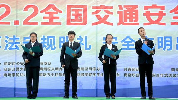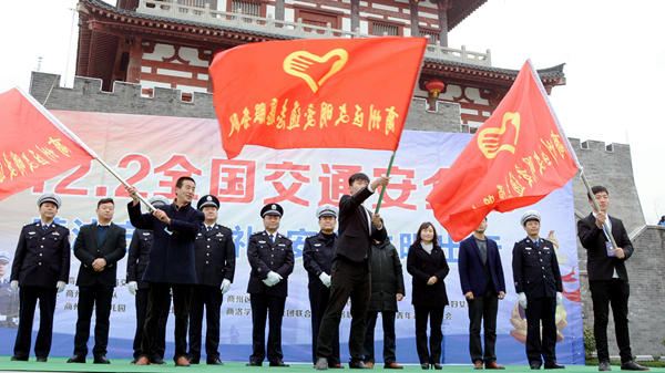 為倡導(dǎo)廣大市民文明、有序、安全出行,營(yíng)造和諧文明的交通環(huán)境。12月2日,商洛市公安局交通警察支隊(duì)組織開(kāi)展了以“遵法守規(guī)明禮 安全文明出行”為主題的2017年全國(guó)交通安全日宣傳活動(dòng)。我校團(tuán)委積極組織近百名志愿者參加本次活動(dòng)。商洛市公安局交警支隊(duì)支隊(duì)長(zhǎng)樊永生為我校文明交通志愿服務(wù)隊(duì)授旗。