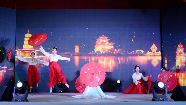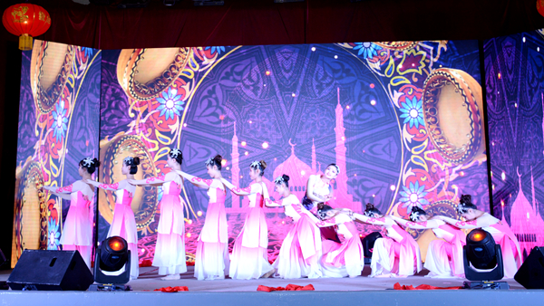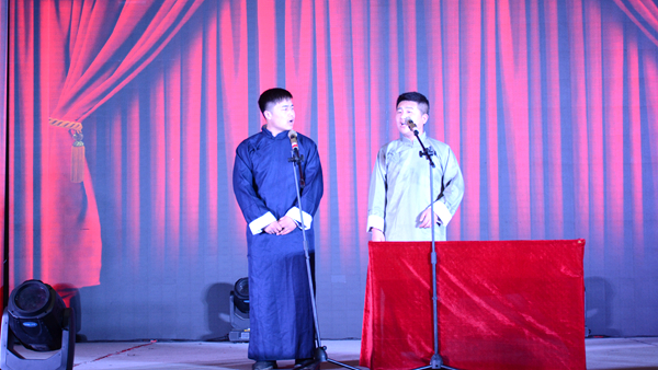 整場晚會形式多樣、豐富多彩,包括歌曲、舞蹈、相聲、啞劇、魔術、朗誦等18個節(jié)目。晚會在舞蹈《花開中國年》中拉開序幕。舞蹈《夢桃仙》將京劇元素融入排舞動作,歡快多姿、俏麗生動;相聲《我愛歌曲》語言風趣幽默,帶動了全場氣氛;歌曲《光榮》謳歌了十九大描繪的偉大新時代,唱出了中國人自豪光榮的國家情懷;武術表演《秦武風采》鏗鏘有力,一招一式中盡顯中華雄風;朗誦《永恒的情懷》感情真摯感人,感嘆青春芳華,表達了莘莘學子立志揮灑青春、奉獻祖國的豪情壯志;魔術《紅白幻象》千變萬化、精彩神奇,將觀眾帶入了奇幻的世界。