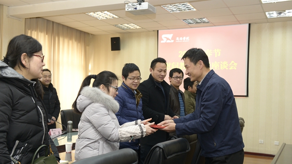 1月16日上午,我校召開2018年春節(jié)慰問教師代表座談會。副校長劉勇代表學(xué)校向與會教師送去了春節(jié)慰問和美好祝愿,向與會教師發(fā)放了春節(jié)慰問金。院長辦公室負責(zé)人參加座談。教務(wù)處處長李超主持座談。