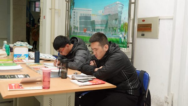 勤奮的莘莘學(xué)子早早到來,等候圖書館開放。