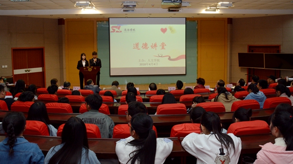 為進一步培育和踐行社會主義核心價值觀,大力宣傳學習道德模范和身邊好人的感人事跡,增強思想政治工作實效性,我校決定開辦“道德講堂”,每月一期,由各二級學院輪流負責舉辦。4月4日,由人文學院負責,以“贈人玫瑰,手有余香”為主題的第一期“道德講堂”順利舉辦。紀委書記王思懷出席活動,宣傳部負責人及各二級學院黨總支書記參加活動。