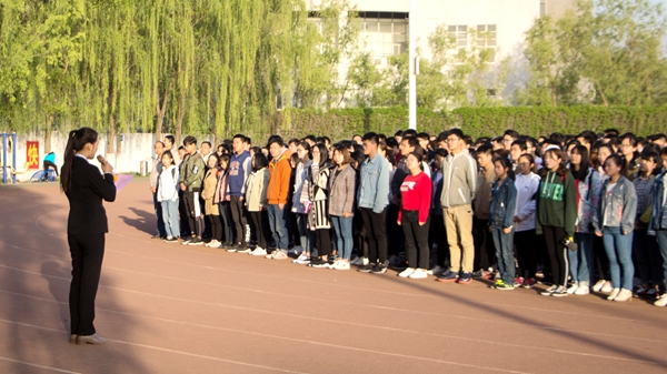 4月9日清晨7點(diǎn)10分,新一周緊張又忙碌的校園生活從數(shù)計(jì)學(xué)院“同抒愛國(guó)情,共筑中國(guó)夢(mèng)”主題升旗儀式開始。伴隨著激昂的國(guó)歌,數(shù)計(jì)學(xué)院全體師生莊嚴(yán)而肅穆地注視著五星紅旗在體育場(chǎng)國(guó)旗臺(tái)冉冉升起。在體育場(chǎng)晨練、排練節(jié)目的師生及在周邊晨讀的同學(xué)聽到國(guó)歌響起,不約而同地原地肅立向國(guó)旗行注目禮,表達(dá)對(duì)國(guó)旗的敬意。