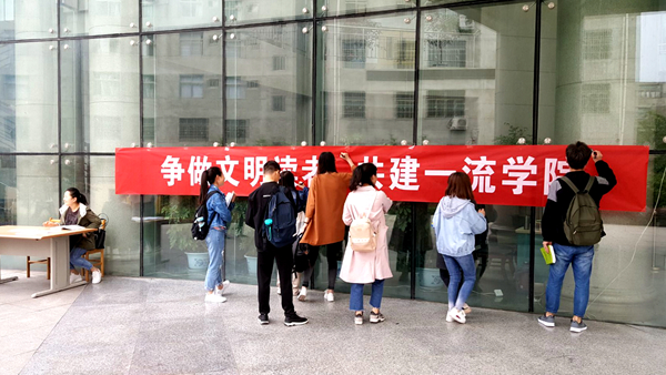 4月以來,圖書館開展了以“讓讀書成為習慣,讓書香溢滿商院”為主題的讀書月系列活動。4月23日,舉行了“爭做文明讀者,共建一流學院”主題簽名活動。