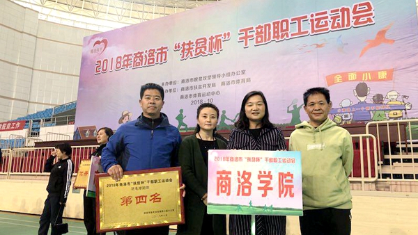 10月24日至26日,由商洛市脫貧攻堅領導小組辦公室主辦,商洛市扶貧開發(fā)局、商洛市體育局、商洛市體育運動中心承辦的2018年商洛市“扶貧杯”干部職工運動會在商洛市體育館舉行,來自市直47個單位的1000余名運動員參加了本次運動會。本次運動會共設羽毛球、乒乓球、趣味項目三大類團體賽,我校參加了羽毛球和乒乓球兩個項目的比賽。我校20余名運動員、教練員和工作人員在工會、體育教學部和后勤保障處的聯(lián)合組織下認真訓練,積極參賽。比賽中隊員們沉著應戰(zhàn)、穩(wěn)定發(fā)揮、團結協(xié)作、頑強拼搏,最終獲得了羽毛球團體第四名的成績。