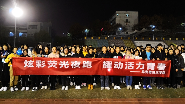 ——熒光夜跑活動。11月26日晚,馬克思主義學院在學校操場舉辦以“炫彩熒光夜跑,耀動青春活力”為主題的夜跑活動,200多名師生參加了此次活動?;顒娱_始后,師生們手帶熒光環(huán)、揮舞熒光棒,在慢跑中欣賞夜色中的校園,用自己的青春和活力為校園增添靚麗風景。夜跑結束后,大家還一起進行了有趣的互動游戲,在歡樂的氛圍中享受運動的樂趣,增進彼此的友誼。