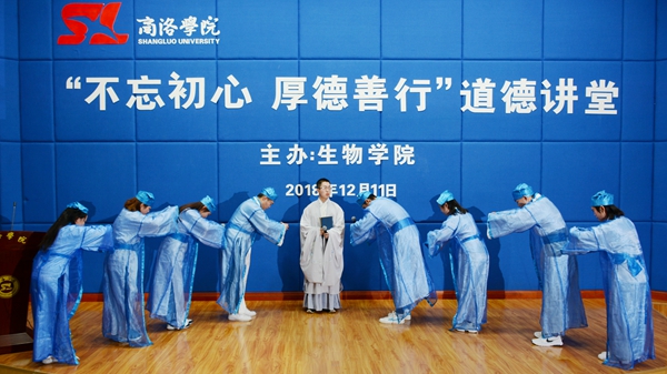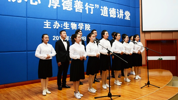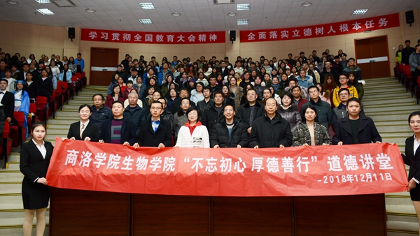 12月11日晚,生物學(xué)院在圖書館二樓報(bào)告廳舉辦了以“不忘初心 厚德善行”為主題的道德講堂。宣傳部、校團(tuán)委、教務(wù)處相關(guān)人員,生物學(xué)院全體教師、學(xué)生代表及各學(xué)院團(tuán)員代表參加了活動(dòng)。