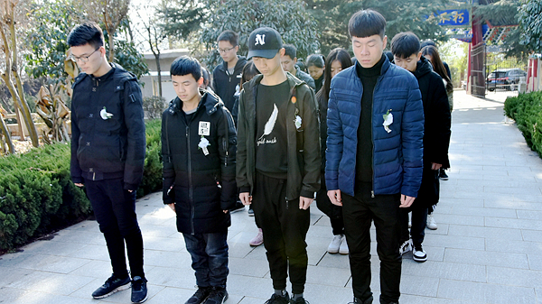 在莘子苑,學生會、新青年通訊社的學子們伴隨著雄壯的國歌聲,全體齊唱中華人民共和國國歌,并集體默哀一分鐘,哀悼罹難的同胞。學生代表郝志杰作主題發(fā)言。他說,作為當代大學生,應(yīng)學習歷史,反思歷史,牢記歷史,勿忘國恥,決不能忘卻歷史,忘卻苦難,還要立志成才,學好扎實本領(lǐng),自覺把個人的理想追求融入國家和民族的事業(yè)中,做社會主義建設(shè)者和接班人。隨后,參加活動的全體人員還一起閱讀愛國書籍,從書中回顧民族歷史,增強愛國熱情,并紛紛在“銘記歷史 勿忘國恥”的橫幅上簽字表態(tài),表明他們不忘歷史、愛國奮進的堅定決心。