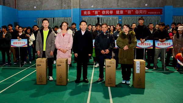 12月24日,由我校工會、體育教學(xué)研究部、繼續(xù)教育學(xué)院聯(lián)合主辦的2018年“聯(lián)通杯”羽毛球賽圓滿落幕,校黨委副書記、工會主席彭虎軍出席閉幕式。中國聯(lián)通公司商洛分公司副總經(jīng)理陳安民,商州區(qū)營服中心經(jīng)理田少波、副經(jīng)理王建霞,我校工會、繼續(xù)教育學(xué)院、體育教學(xué)研究部相關(guān)負(fù)責(zé)人、各工會分會負(fù)責(zé)人及參賽師生一起參加了閉幕式。