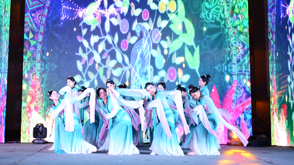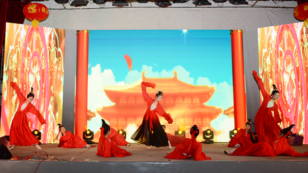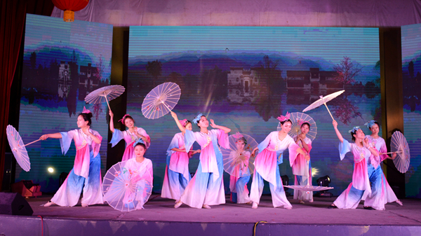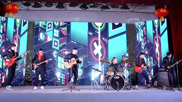 當晚的大學生活動中心張燈結(jié)彩,喜氣洋洋,洋溢著歡快的節(jié)日氣氛。晚會在《春節(jié)序曲》《花好月圓》器樂合奏的精彩表演中拉開序幕,歌舞、相聲、小品、武術(shù)、戲曲等17個形式多樣、精彩紛呈的節(jié)目贏得了臺下觀眾們的陣陣喝彩。其中,《China beat》用街舞與中國元素相結(jié)合,動感的舞步展示了商院學子活潑團結(jié)、朝氣蓬勃、健康向上的精神風貌;教職工們身著漢服邁著輕快靈動、曼妙翩躚舞步,用一支古典舞《采薇》展示了中華文化的博大精深;電音歌曲《彩虹》以激昂高亢的節(jié)奏燃爆全場;相聲《西游說》致敬經(jīng)典,語言詼諧幽默,贏得了全場熱烈的掌聲;蒙蒙煙雨,幽幽古巷,裊裊佳人,在無數(shù)小橋流水的襯托下,一曲《小城雨巷》更顯江南的柔媚;《武動青春》集百家之長,將雙截棍、太極、跆拳道、散打融為一體,高亢的鑼鼓伴隨著舞獅將現(xiàn)場的氣氛推向了高潮。