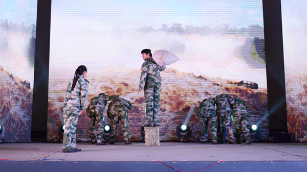 晚會結(jié)束后,校領(lǐng)導與全體演職人員合影留念。