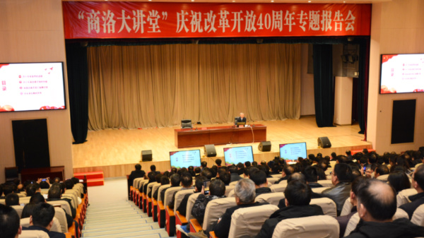 12月29日,“商洛大講堂”在商洛市行政中心舉辦慶祝改革開放40周年專題報(bào)告會(huì),特邀我校楊增強(qiáng)教授作報(bào)告。我校黨委書記龍治剛、校長(zhǎng)范新會(huì)、部分處級(jí)干部與商洛市委中心組成員、各市直機(jī)關(guān)單位相關(guān)負(fù)責(zé)人等400余人一起聽取了報(bào)告。