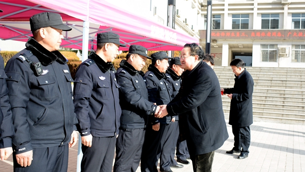 每到一處,校領(lǐng)導(dǎo)都與值班工作人員親切握手并送上節(jié)日慰問金,對(duì)他們?cè)诖汗?jié)期間堅(jiān)守工作崗位表示感謝,祝愿他們?cè)谛碌囊荒昀锕ぷ黜樌?、幸福安康、萬事順意,叮囑他們要安排好寒假和春節(jié)期間的工作和生活,確保廣大師生度過一個(gè)歡樂祥和的春節(jié),希望他們?cè)谛碌囊荒瓿掷m(xù)發(fā)揚(yáng)愛崗敬業(yè)優(yōu)良傳統(tǒng),一如既往認(rèn)真履職,為學(xué)校和諧穩(wěn)定發(fā)展做好各項(xiàng)服務(wù)保障工作。