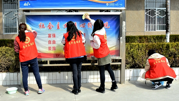 隨后,百余名志愿者參加了以“學(xué)習(xí)雷鋒精神,凈化美麗校園”為主題的校園美化活動(dòng)。志愿者們分為三組,有的擦拭閱報(bào)欄、垃圾桶,有的撿拾校園垃圾,大家各司其職、有條不紊,手拿抹布、水盆等清潔用具,在校園的各個(gè)角落忙碌,用實(shí)際行動(dòng)守護(hù)美麗、文明、衛(wèi)生的校園環(huán)境,用熱情和汗水為春日的校園增色添彩。
