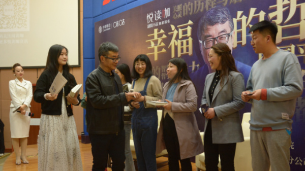 周國平先生從哲學(xué)角度入手,對“幸福是什么”作了具體闡述,他認(rèn)為幸福就是讓生命和精神有良好品質(zhì)和狀態(tài),做到生命的單純和精神的優(yōu)秀,把‘命照看好,心安頓好’,人生就是幸福的。他結(jié)合自身經(jīng)歷,從愛情與親情、事業(yè)、閱讀與寫作三個(gè)方面向大家講述了幸福的本質(zhì)與內(nèi)涵。他指出,所有的不平凡都要回歸平凡,人生中那些最本質(zhì)的幸福是簡單且平凡的,要享受愛情、親情等自然感情,珍惜平凡的生活。他還指出,一個(gè)人的能力分為一般的智力品質(zhì)與每個(gè)人的獨(dú)特稟賦兩個(gè)層次。他鼓勵(lì)青年學(xué)生在大學(xué)階段培養(yǎng)智力活動的興趣和習(xí)慣,努力讓自己具備對世界及對事物的好奇心和獨(dú)立思考的能力。對于閱讀與寫作,他建議同學(xué)們通過寫日記的習(xí)慣來保留生命中的點(diǎn)滴,在寫作中剖析、審視生活,同時(shí)還要閱讀閃耀著思想光輝的經(jīng)典作品,與優(yōu)秀的靈魂對話。
