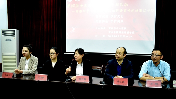 劉寶盈代表學校對商洛市中心醫(yī)院抗癌科普宣傳活動走進我校表示熱烈的歡迎,對蒞臨本次活動的領導和專家表示衷心的感謝,并向與會人員介紹了我校的基本情況及健康管理學院的發(fā)展狀況。他希望兩家單位能以此次活動為契機,進一步深化合作,攜手提高學校的人才培養(yǎng)質(zhì)量和學生的技術應用能力,為商洛市的社會發(fā)展作出更大的貢獻。