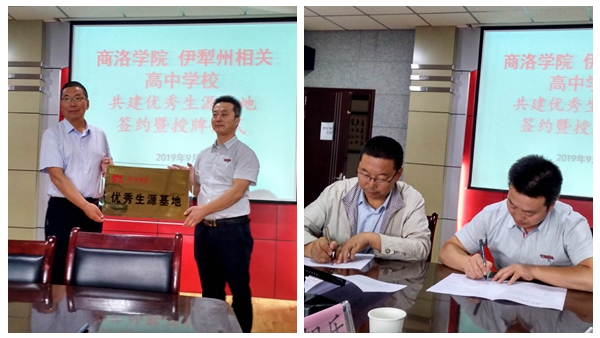 在疆期間,帶隊(duì)教師還專程看望了我校在疆就業(yè)的部分校友,為他們送去學(xué)校的關(guān)懷。教務(wù)處工作人員還前往新疆伊犁州伊寧市第三中學(xué)、第四中學(xué)等5所高中,與校方簽訂共建“優(yōu)秀生源基地”協(xié)議,頒授了“商洛學(xué)院優(yōu)秀生源基地” 牌匾。簽約雙方均表示未來將持續(xù)深化交流合作,進(jìn)一步實(shí)現(xiàn)優(yōu)勢(shì)互補(bǔ),攜手共謀長遠(yuǎn)發(fā)展。