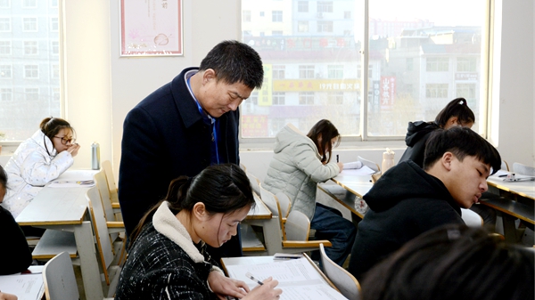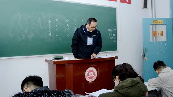 本學(xué)期期末考試于2019年12月30日至2020年1月10日進行,開考首日,校領(lǐng)導(dǎo)龍治剛、范新會、彭虎軍、劉寶盈、劉勇、王新軍在教務(wù)處和相關(guān)院部負責(zé)人的陪同下,分頭深入考場,檢查指導(dǎo)期末考試工作。