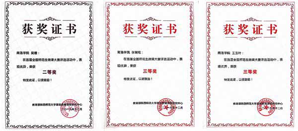 近日,由教育部陜西師范大學(xué)基礎(chǔ)教育課程研究中心聯(lián)合西北教師教育聯(lián)盟舉辦的首屆全國(guó)師范生微課大賽結(jié)果公布,我校參賽學(xué)生榮獲二等獎(jiǎng)1項(xiàng)、三等獎(jiǎng)2項(xiàng)、優(yōu)秀獎(jiǎng)15項(xiàng)。