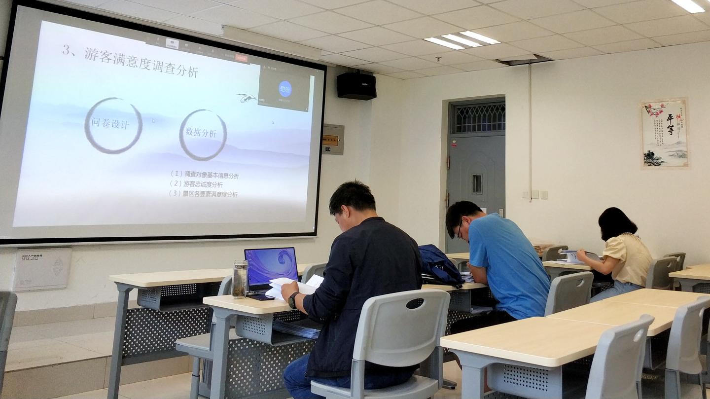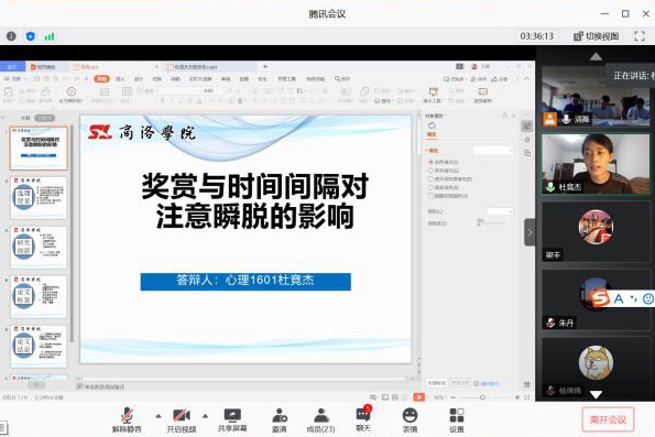 ——線上答辯、井然有序。各學(xué)院根據(jù)實(shí)際情況采取線下線上相結(jié)合的方式組織論文答辯。近2000名學(xué)生使用騰訊會(huì)議、騰訊課堂、釘釘?shù)确€(wěn)定、流暢的網(wǎng)絡(luò)平臺(tái),通過(guò)在線直播互動(dòng)或視頻會(huì)議方式進(jìn)行論文答辯。各學(xué)院根據(jù)本院師生的論文寫作與指導(dǎo)進(jìn)展情況,認(rèn)真組織籌劃,嚴(yán)守時(shí)間節(jié)點(diǎn),科學(xué)制定本學(xué)院畢業(yè)論文(設(shè)計(jì))答辯方案及成績(jī)?cè)u(píng)定規(guī)范,提前做好在線答辯細(xì)節(jié)演練,分配好答辯小組,嚴(yán)密答辯流程,確保了答辯工作與往年現(xiàn)場(chǎng)答辯相比等質(zhì)同效、水準(zhǔn)不降。在線上答辯中,合理分配任務(wù),做好排序通知,保持答辯順暢進(jìn)行。在線下現(xiàn)場(chǎng)答辯中,做好室內(nèi)消殺、開窗通風(fēng),避免人員聚集,嚴(yán)格落實(shí)各項(xiàng)防控措施。