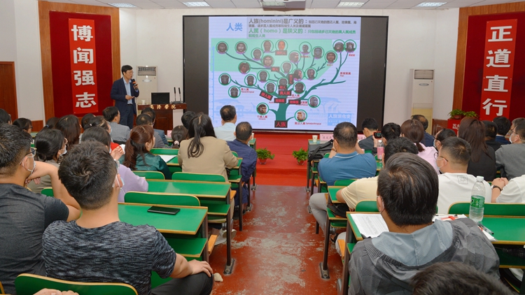 5月13日,中國(guó)科學(xué)院院士、發(fā)展中國(guó)家科學(xué)院院士、中國(guó)科學(xué)院青藏高原研究所所長(zhǎng)、中國(guó)地理學(xué)會(huì)理事長(zhǎng)、我校兼職教授陳發(fā)虎為師生代表作了題為“夏河丹尼索瓦古老型智人、現(xiàn)代智人興起與史前人類(lèi)定居青藏高原”的學(xué)術(shù)報(bào)告。黨委書(shū)記龍治剛主持報(bào)告會(huì)。中科院青藏高原所科研教育處處長(zhǎng)汪亞峰、商洛市科技局局長(zhǎng)趙緒春,副校長(zhǎng)王新軍出席報(bào)告會(huì)。我校師生代表200余人聽(tīng)取報(bào)告。