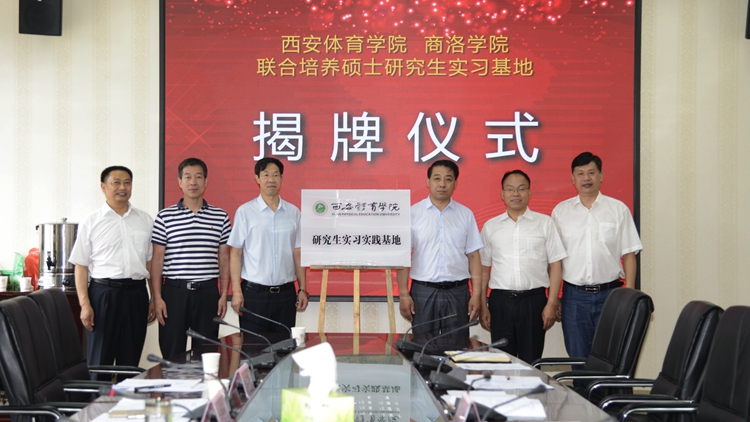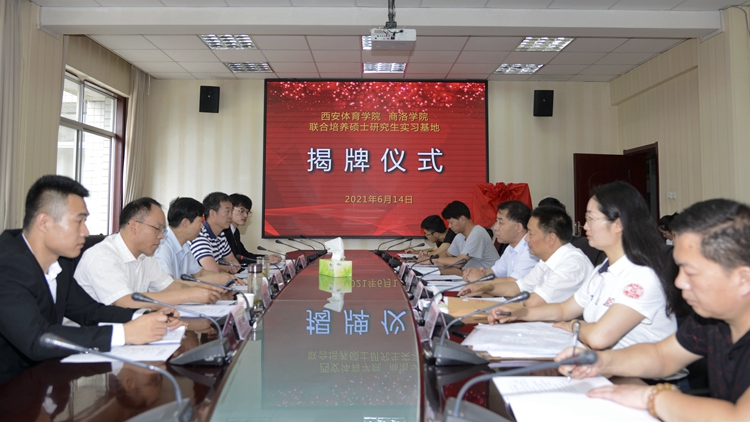 6月14日,西安體育學(xué)院?商洛學(xué)院研究生實(shí)習(xí)基地揭牌儀式暨聯(lián)合培養(yǎng)研究生學(xué)位論文答辯會(huì)在我校舉行,副校長(zhǎng)王新軍、西安體育學(xué)院副校長(zhǎng)劉新民分別代表雙方學(xué)校為研究生實(shí)習(xí)基地揭牌。我校與西安體育學(xué)院相關(guān)職能部門(mén)負(fù)責(zé)人參加揭牌儀式。