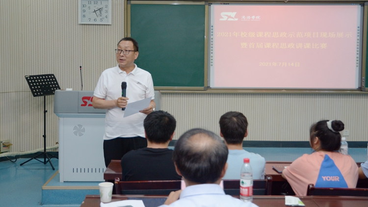 劉寶盈宣布比賽結(jié)果并做總結(jié)講話(huà)。他要求全體教師要以本次比賽為契機(jī),持續(xù)加強(qiáng)“課程思政”理論素養(yǎng),找準(zhǔn)實(shí)施“課程思政”教學(xué)的切入點(diǎn),錘煉“課程思政”教學(xué)技能,形成示范效應(yīng),激勵(lì)更多教師、更多課程積極開(kāi)展“課程思政”建設(shè)與創(chuàng)新,形成“門(mén)門(mén)有思政、課課有特色、人人重育人”的良好局面,使各類(lèi)課程與思想政治理論課程同向同行,發(fā)揮“課程思政”潤(rùn)物無(wú)聲的作用,推動(dòng)我?!罢n程思政”建設(shè)不斷取得新成效。