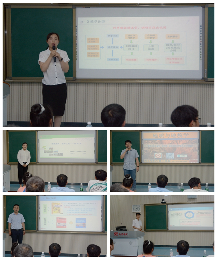 現(xiàn)場(chǎng)展示采取參賽教師5分鐘說(shuō)課和15分鐘講課的方式進(jìn)行。5名參賽教師精心備賽、準(zhǔn)備充分,以PPT課件、板書(shū)等傳統(tǒng)教學(xué)方式為基礎(chǔ),深入挖掘各自課程蘊(yùn)含的思政教育元素和所承載的思政教育功能,充分展示了各自的“課程思政”理論功底和教學(xué)風(fēng)采。