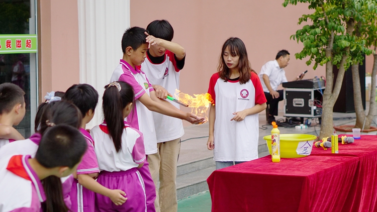 為全面貫徹落實(shí)《全民科學(xué)素質(zhì)行動(dòng)計(jì)劃綱要》及2021年“全國科普日”相關(guān)要求部署,9月15日,我校聯(lián)合商洛市科協(xié)、商州區(qū)科協(xié)及商州知其然科普教育基地,在商州區(qū)和山陽縣舉辦了以“百年再出發(fā),邁向高水平科技自立自強(qiáng)”為主題的“全國科普日 科普進(jìn)校園”活動(dòng)。我?!叭瞬欧?wù)團(tuán)”“流動(dòng)科技館”30余名師生,商洛市、山陽縣相關(guān)工作人員,商州區(qū)富興小學(xué)及山陽縣色河鋪鎮(zhèn)九年制學(xué)校和戶家塬鎮(zhèn)中心小學(xué)1500余名師生參加活動(dòng)。