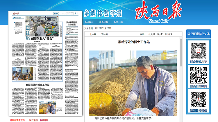 1月27日,《陜西日?qǐng)?bào)》科技版以《秦嶺深處的博士工作站》為題,專題報(bào)道了我校與陜西森弗天然制品有限公司開展產(chǎn)學(xué)研合作,建立博士工作站,助力科技成果轉(zhuǎn)化,服務(wù)產(chǎn)業(yè)升級(jí),帶動(dòng)地方發(fā)展和鄉(xiāng)村振興的工作成果。