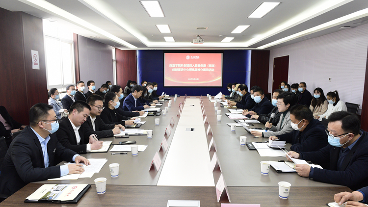 我校15個科創(chuàng)項目負責人從技術(shù)背景、核心產(chǎn)品、商業(yè)模式、產(chǎn)業(yè)化前景、項目規(guī)劃、團隊組成等方面進行了項目推介匯報展示。參會人員圍繞共建秦創(chuàng)原(商洛)創(chuàng)新促進中心,以企業(yè)需求為主導加快科技成果轉(zhuǎn)化落地,校政企三方開展座談交流。