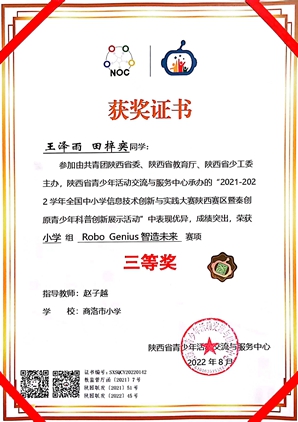 由共青團(tuán)陜西省委、陜西省教育廳、陜西省少工委主辦的2021-2022學(xué)年全國(guó)中小學(xué)信息技術(shù)創(chuàng)新與實(shí)踐(NOC)大賽陜西賽區(qū)分賽結(jié)果于近日揭曉。經(jīng)濟(jì)管理學(xué)院教師趙子越指導(dǎo)的商洛市小學(xué)團(tuán)隊(duì)獲得陜西賽區(qū)人工智能類Robo Genius智造未來(lái)賽項(xiàng)小學(xué)組省級(jí)三等獎(jiǎng)。這是在我校公眾科學(xué)素質(zhì)與創(chuàng)新發(fā)展研究中心指導(dǎo)下,該校學(xué)生首次取得省級(jí)人工智能類賽事獎(jiǎng)項(xiàng)。