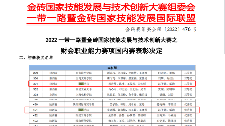 近日,“2022一帶一路暨金磚國家技能發(fā)展與技術(shù)創(chuàng)新大賽”等多項財會類專業(yè)高水平競賽結(jié)果陸續(xù)公布,我校經(jīng)濟管理學(xué)院參賽師生捷報頻傳,在4項競賽中榮獲省級獎勵。