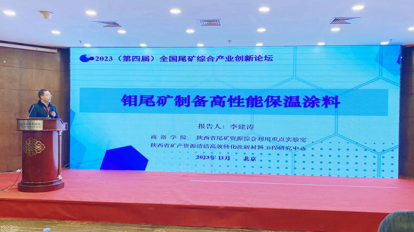 我校李建濤博士在大會上作了題為“鉬尾礦制備高性能保溫涂料”的學術報告,介紹了我校扎根秦嶺,變“尾”為寶,守護綠水青山,服務區(qū)域發(fā)展的辦學特色。分享了鉬尾礦制備保溫真石漆、復合保溫涂料、二氧化硅氣凝膠相關關鍵技術。