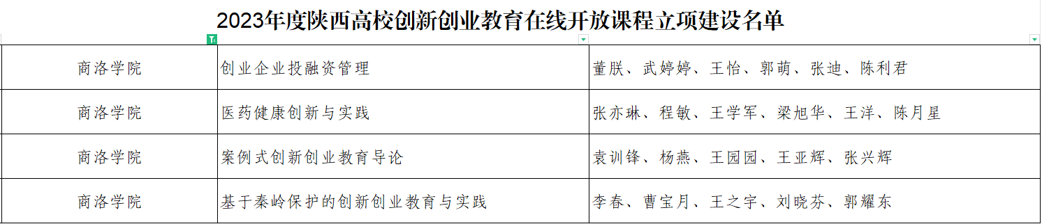 近日,陜西省教育廳發(fā)布了《關(guān)于公布2023年度陜西高校創(chuàng)新創(chuàng)業(yè)教育在線開放課程立項(xiàng)建設(shè)名單的通知》,我?!秳?chuàng)業(yè)企業(yè)投融資管理》《醫(yī)藥健康創(chuàng)新與實(shí)踐》《案例式創(chuàng)新創(chuàng)業(yè)教育導(dǎo)論》《基于秦嶺保護(hù)的創(chuàng)新創(chuàng)業(yè)教育與實(shí)踐》四門課程獲批建設(shè)省級(jí)創(chuàng)新創(chuàng)業(yè)教育在線開放課程,立項(xiàng)數(shù)量再創(chuàng)新高,位居同類院校前列。