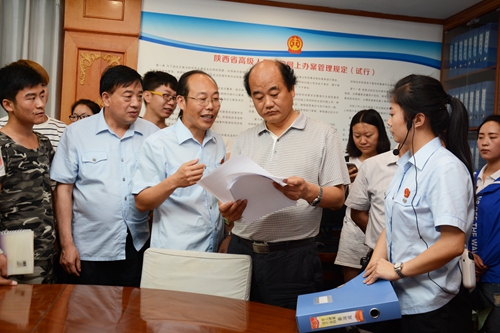 活動(dòng)期間,校領(lǐng)導(dǎo)劉建林、范新會(huì)及師生依次參觀了商洛中院的審判法庭、科技法庭、黨建活動(dòng)室、審判質(zhì)效管理辦公室和執(zhí)行指揮中心以及法官們工作生活場(chǎng)地,感受人民法院的神圣,感知審判執(zhí)行全過(guò)程,零距離了解人民法官。