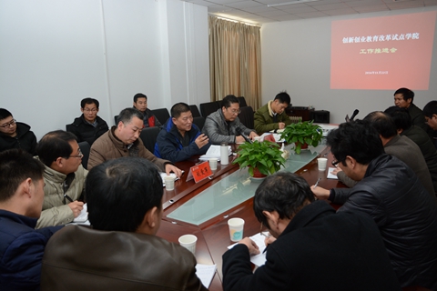 11月23日,我校召開創(chuàng)新創(chuàng)業(yè)教育改革試點(diǎn)學(xué)院建設(shè)工作推進(jìn)會(huì)。黨委副書記、副校長(zhǎng)范新會(huì)出席會(huì)議,對(duì)進(jìn)一步理清思路,明確創(chuàng)新創(chuàng)業(yè)教育改革試點(diǎn)學(xué)院建設(shè)方向提出了具體要求。范新會(huì)強(qiáng)調(diào),要把創(chuàng)新創(chuàng)業(yè)教育和教學(xué)科研工作緊密結(jié)合,著力培養(yǎng)學(xué)生的創(chuàng)新精神、創(chuàng)業(yè)意識(shí),通過(guò)試點(diǎn)學(xué)院建設(shè)全面推動(dòng)我校創(chuàng)新創(chuàng)業(yè)教育?;膶W(xué)院相關(guān)負(fù)責(zé)人及教師代表參加了推進(jìn)會(huì)。會(huì)議由教務(wù)處處長(zhǎng)李超主持。