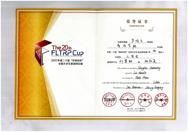 “外研社杯”全國大學生英語辯論賽是唯一的全國性英語辯論賽事,自1997年起每年舉辦一屆,由共青團中央、全國學聯(lián)及北京外國語大學聯(lián)合主辦,外語教學與研究出版社承辦,大賽采用英式辯論體系,與“世界大學生辯論賽”賽制接軌,是目前國內(nèi)水平最高、規(guī)模最大的英語辯論比賽,代表了我國英語口語教學的最高水平。此次比賽有來自四川、重慶、陜西、河南、山西、新疆、甘肅、寧夏、西藏、青海、內(nèi)蒙古等11個省(直轄市、自治區(qū))的107所高校參加。