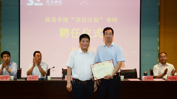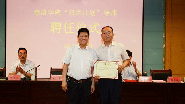 儀式上,范校長為劉新民教授、楊建設(shè)教授頒發(fā)了“雙百計(jì)劃”導(dǎo)師聘書。