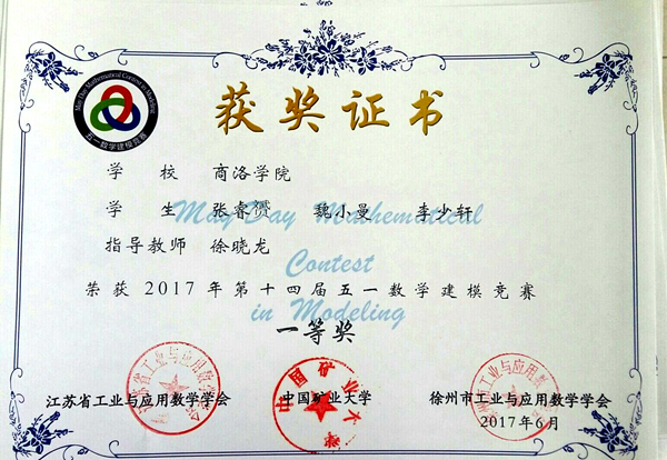 近日,由江蘇省工業(yè)與應(yīng)用數(shù)學(xué)學(xué)會(huì)主辦的第十四屆五一數(shù)學(xué)建模競賽結(jié)果揭曉,我校共獲得一等獎(jiǎng)1項(xiàng),二等獎(jiǎng)1項(xiàng),三等獎(jiǎng)3項(xiàng),我校被評(píng)為“優(yōu)秀組織單位”。這是我校在此項(xiàng)賽事中首次獲得一等獎(jiǎng)。