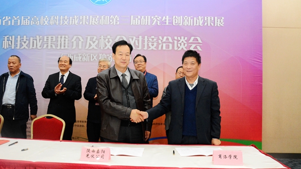 在校企對接洽談會上,校長范新會與陜西嘉陽光伏電力服務有限公司董事長許衛(wèi)峰代表雙方簽訂了校企合作協(xié)議。協(xié)議規(guī)定,雙方以橫向課題的形式共同完成我校專利“一種智能型光伏發(fā)電太陽傘”的開發(fā),嘉陽光伏電力公司擬投資20萬人民幣作為課題的使用經費,對該專利進行進一步的研發(fā)、優(yōu)化、生產。