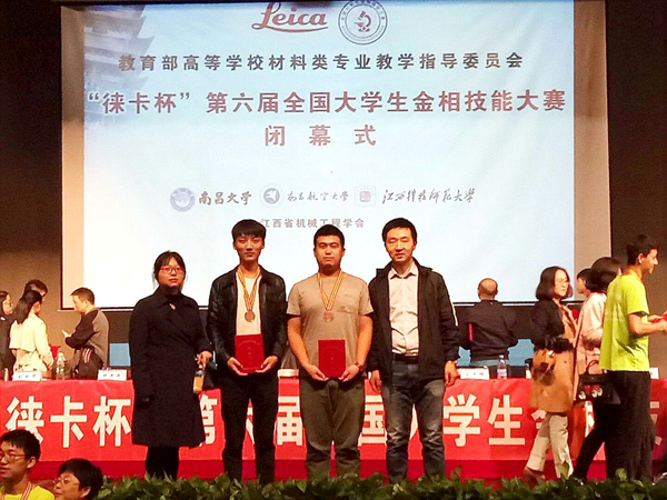 10月11日至13日,由教育部高等學(xué)校材料類專業(yè)教學(xué)指導(dǎo)委員會主辦,南昌大學(xué)、南昌航空大學(xué)、江西科技師范大學(xué)聯(lián)合承辦的第六屆“徠卡杯”全國大學(xué)生金相技能大賽在江西南昌舉行。我校學(xué)生首次參加大賽并獲獎,化材學(xué)院金屬材料工程專業(yè)2015級學(xué)生崔旋、劉寶琪分別獲得大賽三等獎。