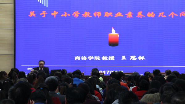 開(kāi)班典禮結(jié)束后,我校紀(jì)委書記王思懷以《關(guān)于中小學(xué)教師職業(yè)素養(yǎng)的幾個(gè)問(wèn)題》為題,從做教師的幸福感進(jìn)入最好歷史時(shí)期、規(guī)范中小學(xué)教師職業(yè)素養(yǎng)的法規(guī)依據(jù)、中小學(xué)生喜歡的好教師形象、中小學(xué)教師良好素養(yǎng)的自我錘煉四個(gè)方面為參訓(xùn)學(xué)員做了一場(chǎng)精彩的報(bào)告。報(bào)告中,王思懷通過(guò)鮮活的事例講述了現(xiàn)階段人們對(duì)知識(shí)的尊重、對(duì)文化的推崇,論證了從事教師職業(yè)的幸福感,鼓勵(lì)參訓(xùn)教師以積極向上的狀態(tài)立足崗位做貢獻(xiàn)。通過(guò)對(duì)一些典型的違反教師職業(yè)道德案例的剖析,告誡參訓(xùn)教師要嚴(yán)守道德底線,加強(qiáng)自身修養(yǎng),做“有理想信念、有道德情操、有扎實(shí)學(xué)識(shí)、有仁愛(ài)之心”的四有好老師。他用風(fēng)趣幽默的語(yǔ)言從外在形象和內(nèi)在特質(zhì)等方面分析了中小學(xué)生喜歡的好教師形象,并詳細(xì)介紹了提高中小學(xué)教師綜合素養(yǎng)的途徑與方法。