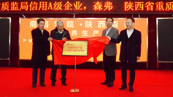 12月8日,我校與陜西森弗天然制品有限公司簽訂共建“健康養(yǎng)生產(chǎn)業(yè)產(chǎn)學研一體化示范基地”協(xié)議。陜西省委高教工委副書記李智軍,省教育廳高教處處長胡海寧,商洛市委常委、副市長王華,校黨委書記龍治剛,森弗天然制品有限公司董事長金新康出席簽約儀式,并共同為“健康養(yǎng)生產(chǎn)業(yè)產(chǎn)學研一體化示范基地”揭牌。副校長劉寶盈與森弗天然制品有限公司董事長金淑俠簽訂《健康養(yǎng)生產(chǎn)業(yè)產(chǎn)學研一體化示范基地建設(shè)協(xié)議》。簽約儀式由商洛市教育局局長胡棟梁主持。