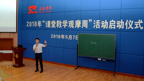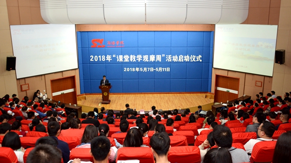 范新會在儀式上作動員講話。他指出,我們組織開展課堂教學觀摩周活動,是對全國高等教育教學改革發(fā)展形勢的積極響應,是發(fā)揮課堂教學主渠道作用提高人才培養(yǎng)質(zhì)量的落地執(zhí)行,也是貫徹全國高校思想政治工作會議精神的具體行動。他談到,課堂教學是“一流學院、一流專業(yè)”建設的“主戰(zhàn)場”。推進課堂教學改革,培養(yǎng)應用型人才,是提高教學質(zhì)量、推進“一流學院”建設的關(guān)鍵;課堂教學是鞏固立德樹人的“主陣地”。要堅持把立德樹人作為中心環(huán)節(jié),把思想政治工作貫穿教育教學全過程,讓課程思政的理念深入課堂,促進學生全面發(fā)展,健康成長。要在服務地方經(jīng)濟社會發(fā)展的同時,放眼全國,培養(yǎng)適應時代發(fā)展需求的各類應用型人才。要積極探索課堂教學與信息化結(jié)合的途徑,引入外部優(yōu)質(zhì)資源,推進課堂教學改革,整體構(gòu)建符合教育規(guī)律、體現(xiàn)時代特征的課程體系;課堂教學是教師學術(shù)水平的試金石。教師要想真正的掌控課堂,除了要有真本事,還要有真招數(shù),要研究教學內(nèi)容,研究教學方法,要設計課堂、組織課堂、管理課堂,要解決好學生“為什么學、學什么、怎么學”的問題,還要研究“為什么教、教什么、怎么教”的問題。
